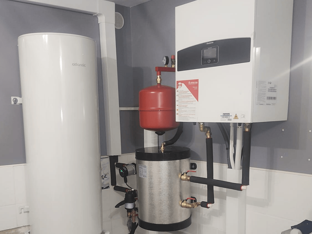 Même sans chaudière, l’ECS reste simple à produire : ballon électrique, ballon thermodynamique sur air ambiant ou air extrait, ou pompe à chaleur air/eau “duo” avec ballon. L’eau est chauffée via un échangeur, stockée dans le ballon, avec priorité ECS et régulation de température pour un confort stable, tandis que le chauffage (radiateurs et/ou plancher chauffant) peut continuer en parallèle. Le remplacement d’une chaudière fioul ou gaz est pris en charge, et nos équipes vous orientent vers la solution la mieux adaptée.